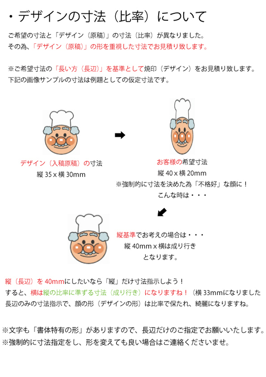 ・ビビリやピンボケのない300ピクセル以上の画像解析度で、焼印製作寸法よりも多きいモノをお送りください。(出来る範囲でOKです)