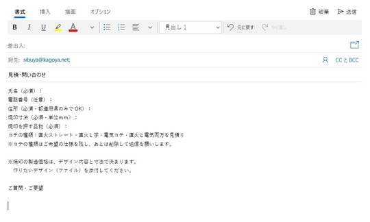 ・PCが苦手なお客様は、まずは「サイズ・デザイン」をお送り下さい。不明点は改めてお伺いいたします。